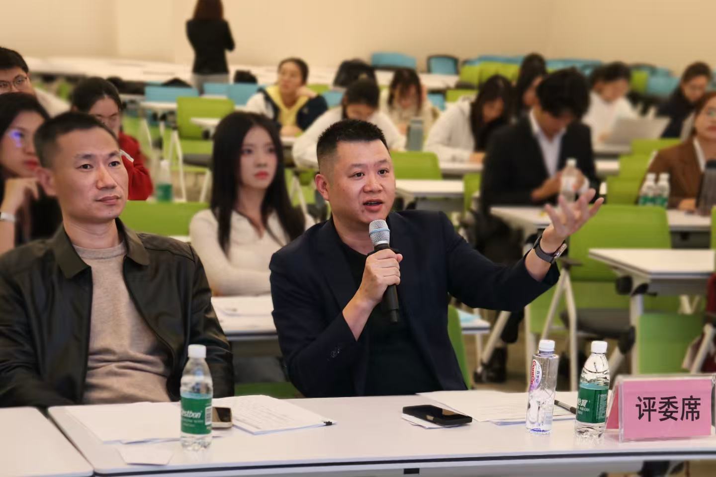 决赛现场,六支队伍依次登台,通过10分钟主题汇报(含英文展示环节)与5分钟答辩交锋,展现了扎实的专业功底与创新思维。由新瑞恒道集团高级副总裁刘琨、财务总监刘志强等企业高管,以及经济贸易学院院长李文秀教授等专业教师组成的评审团,围绕方案落地性、风险应对、数据支撑等维度进行深度点评,既考验选手专业能力,也为其提供了行业前沿视角。